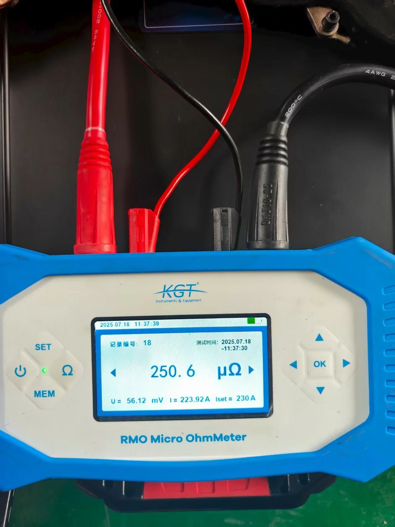 測試現(xiàn)場:專ye售后,實戰(zhàn)贏得信任此次在重慶的售后培訓(xùn),康高特工程師全程以客戶需求為導(dǎo)向。培訓(xùn)現(xiàn)場以265μΩ的標(biāo)準(zhǔn)電阻塊為測試對象,工程師一步步演示操作:先細(xì)致講解接線步驟,再講解電流擋位的選擇要點,確保客戶掌握核心操作。