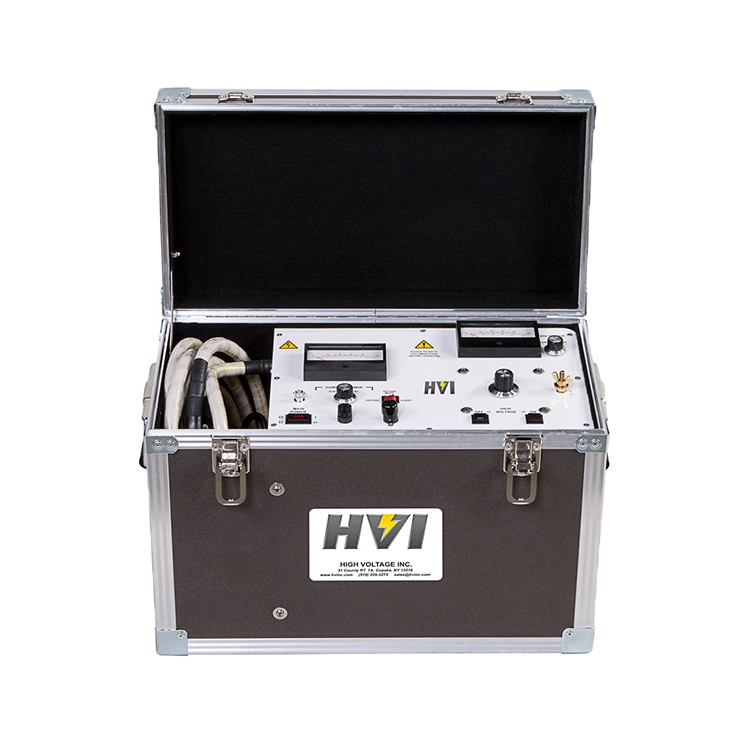 1kVA:連續工作電壓表 3.5 英寸,量程 0 - 25/50 kV 交流,滿量程精度 ±2% 電流表 3.5 英寸,量程 0 - 1 mA,滿量程精度 ±2%,配有 ×1、×10、×100 倍率 失真度 小于 5% 尺寸與重量(寬 × 深 × 高) 21×11.25×15.25 英寸,75 磅