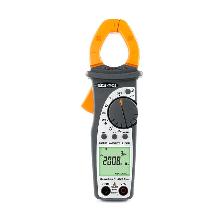 •HT4022鉗型儀表對(duì)單相和/或三相平衡系統(tǒng)執(zhí)行TRMS交流電電流測(cè)量(高達(dá)400A)、交流電/直流電電壓(600V)、頻率、電阻和連續(xù)性測(cè)試、以及有功、無功和表觀功率、功率因數(shù)(余弦φ)和能量測(cè)量,還可以用1線法執(zhí)行相序指示