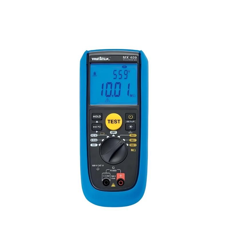 MX409絕緣電阻測(cè)試儀 產(chǎn)品功能:絕緣測(cè)試:在 250V/500V/1000V 電壓下進(jìn)行,支持手動(dòng)、鎖定模式或通過(guò)計(jì)時(shí)器編程測(cè)試 duration(10 秒至 39 分 59 秒),同時(shí)顯示絕緣值和實(shí)際測(cè)試電壓