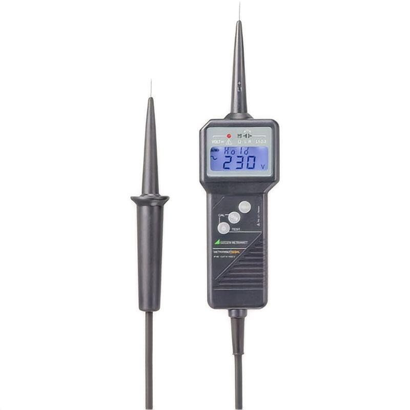 METRAVOLT 12D+L 型測試儀是一款帶數字顯示的兩極電壓測試儀,集成了通斷測試、相位測試、極性測試及相序測試功能。該儀器可安全檢測并測量頻率達 4 千赫茲(kHz)、范圍在 24 至 1000 伏之間的交流(AC)和直流(DC)電壓。