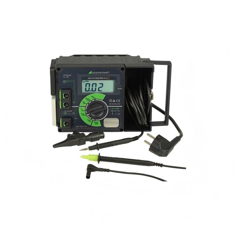 METRATESTER 5+ 是一款符合相關(guān)標(biāo)準(zhǔn)的安規(guī)測(cè)試儀,適用于維修或改裝后電氣設(shè)備的安全測(cè)試與性能參數(shù)測(cè)量。儀器采用緊湊型塑料外殼與可折疊提手,設(shè)計(jì)堅(jiān)固便攜,電纜可有序收納。具備便捷連接特性,通過集成測(cè)試插座、快速連接安全插孔等實(shí)現(xiàn)多種被測(cè)設(shè)備的連接測(cè)試。其配備大型數(shù)字顯示屏,支持測(cè)量值清晰讀取與超限值聲光提示,還設(shè)有 PE 信號(hào)燈等安全裝置及熱過載保護(hù)功能,能保障測(cè)試過程安全可靠。搭配專用附件,可適配更多測(cè)試場(chǎng)景,滿足電氣安全檢驗(yàn)需求。